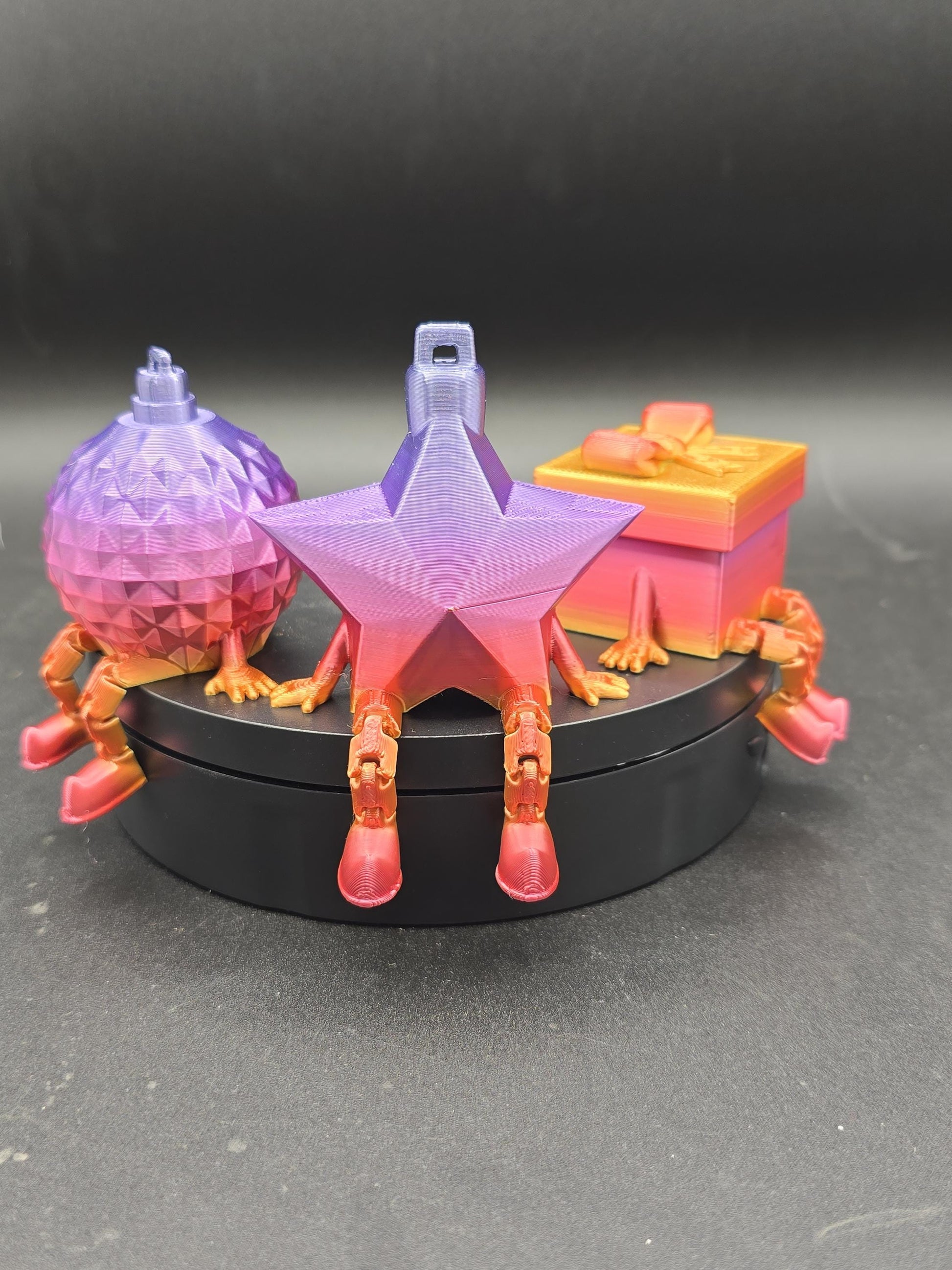 Super cute 3d printed baubles/ decorations with articulated legs.