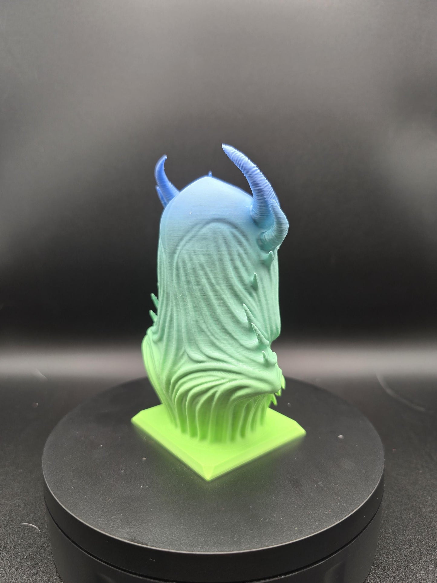 A horned zombie warrior, clad in decayed armor, stands frozen in a menacing, undead stance. which can be any colour of your choosing from current stock.